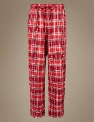 COTTON RICH CHECKED STRAIGHT LEG PYJAMA BOTTOMS
