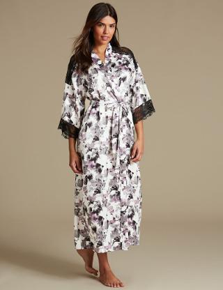 SATIN PRINTED LONG WRAP DRESSING GOWN